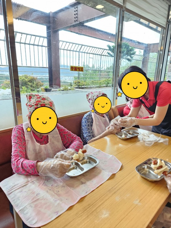 어르신들께서 직접 재료들을 꼬지에 예쁘게 꽂으시고 양념을 발라서 맛보셨습니다♥