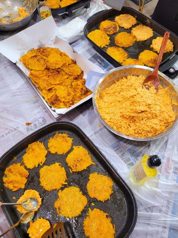 신선한 호박을 직접 다듬고 반죽하여 한 장 한 장 정성 담아서 구워냈습니다~♥
