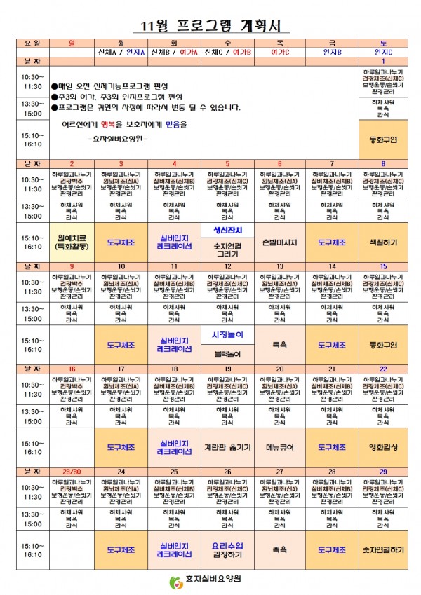 효자실버요양원 2025년 11월 프로그램계획서