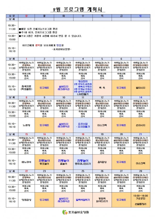 효자실버요양원은 회원의 개인정보를 중요시하며, "정보통신망 이용촉진 및 정보보호"에 관한 법률 및 “개인정보보호법”을 준수하고 있습니다.